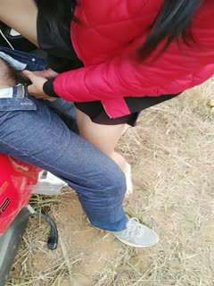 逼毛刮得很干净的淫骚少妇勾引光头佬在摩托车上啪啪搞完还未满足用香蕉插插